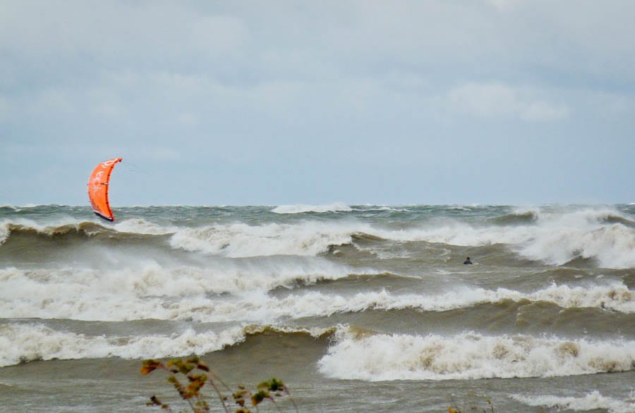 Great Lake wave riding is an extreme sport largely due to the extreme elements involved. The stronger the winds, the larger the waves. Our strongest winds are usually during late fall cold fronts where water temperature plummets into the low 50s or high 40s. Wind chill is also an extreme danger. If you can imagine an epic outer reef swell in Maui, now try to imagine kiting in the middle of the ocean storm that generated those waves and you will be one step closer to understanding our waves.
