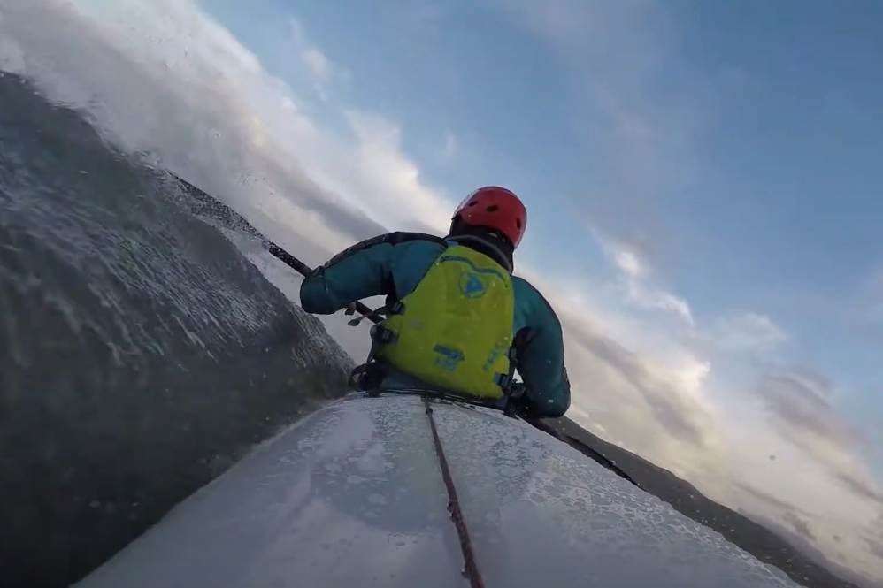 Penrhyn Mawr Tidal Race - (Inner, Middle and Outer Race - increasingly faster and larger waves) famous among sea kayakers, advanced paddling (at least when it looks like these videos) multi-directional waves, can be very technical and challenging (more tidal races). Obviously (from the videos) some skilled sea kayakers with bombproof rolls can handle the race in severe conditions. We do not currently (2020) have reports yet of paddle runs and conditions that safely favor various skill levels (if any) of surfskiers. This may be a tidal race that is simply too full of counter currents, intersecting waves, whirlpools, etc. to allow many if any surfskiers to thrive on its waves. In other tidal races such as Deception Pass, surfskiers have already spent significant time learning angles of entry and exit, zones for surfing without excess turbulence, and weather and tide condition sets that are likely to favor their skill levels.