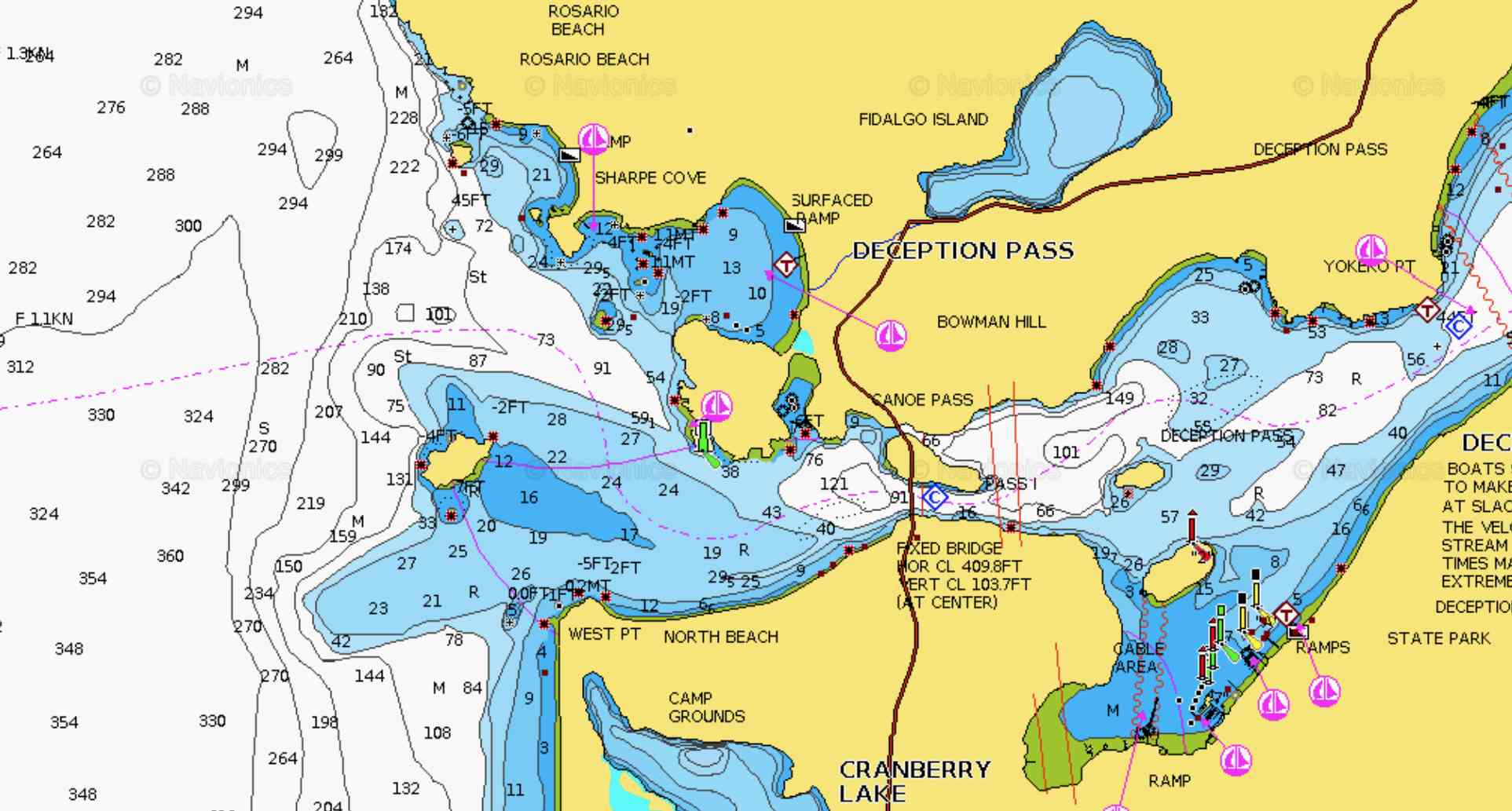 You can paddle anywhere in this beautiful area. Just remember, as the tide strengthens, currents get more turbulent. Eddies form close to shorelines, particularly near where there is the greatest constriction in Canoe Pass and in the main Pass close to the bridge. Eddy lines get stronger and whirlpools form with strong current and eddy lines. Also boats can come through either side (ships on the main side) of Pass Island (the island that separates Canoe Pass from the main pass at the bridge) with a lot of speed and less room to maneuver than in other areas of Deception.